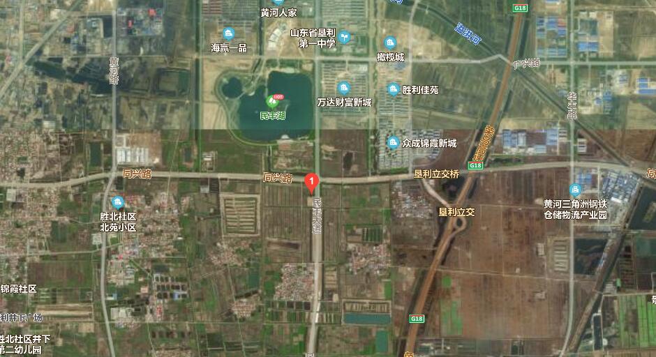 該加油站位于東營市墾利區廬山路與同興路交匯處。該加油站東側為廬山路(主干路),隔路為空地;北側為220kV電力線路(桿高45m);西側為空地;南側為空地。